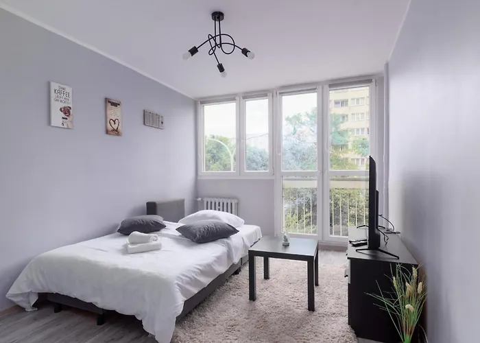 Het appartement is te vinden in de Krzyki wijk, op 10 minuten rijafstand vanaf het Raadhuis van Wrocław. Een wandeling van 30 minuten brengt u naar het stadscentrum.